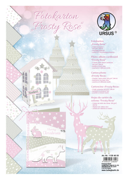 Gestalten Sie festliche Weihnachtsbasteleien mit dem beidseitig bedruckten Fotokarton Frosty Rose.