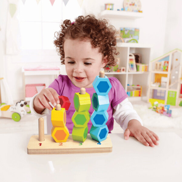Das Zähl- und Steckspiel von hape eignet sich ideal fürs erste Zählen und Farbensortieren.